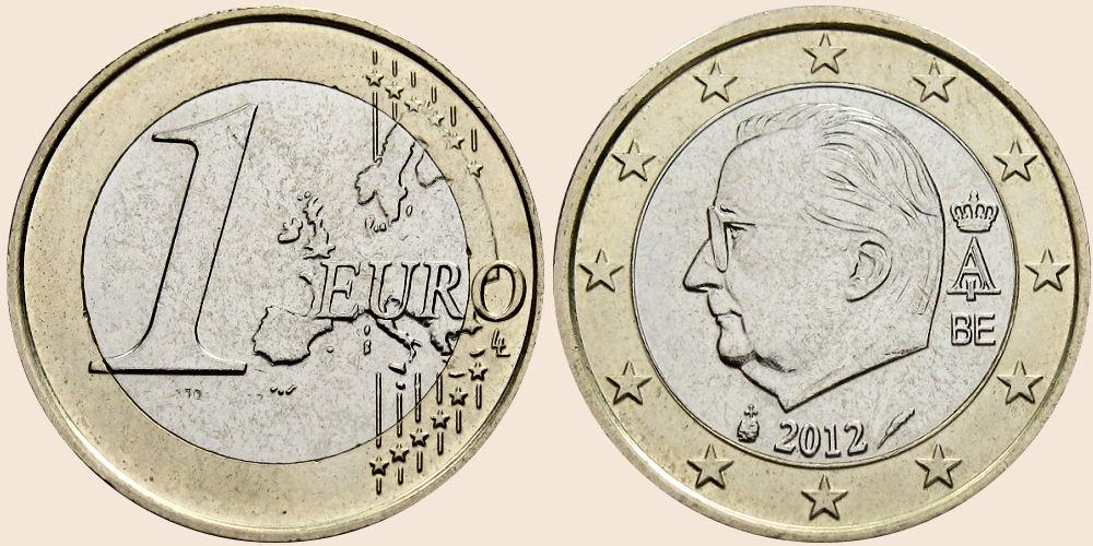 1 Euro, 2010-..., Jahreszahl und Monogramm innerhalb des Kreises, Frisur mit großen Geheimratsecken, Symbol der Prägestätte links, Symbol des Münzmeisters rechts